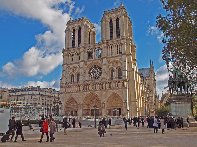 Samo nekoliko stotina metara dalje, nalazi se jedna od tri najveće atrakcije Pariza – gotička katedrala Naše Gospe (Notre-Dame). Kao što je Eiffelov toranj simbol novog Pariza tako je Notre-Dame simbol starog Pariza. Sredinom 12. stoljeća je donesena odluka da se na mjestu gdje je prije stajao rimski hram sagradi katedrala. Gradnja je započela prema planu i potrajala je dvije stotine godina. Izmijenile su se generacije biskupa, radnika, arhitekata, majstora i umjetnika, sve dok konačno po nečijoj odluci nisu završili s radovima. Meni, katedrala djeluje nedovršena – na tornjevima nedostaje završetak. No, možda je to s namjerom nedovršeno, možda su htjeli pokazati kako nešto ne mora biti savršeno-dovršeno kako bi bilo savršeno-skladno.