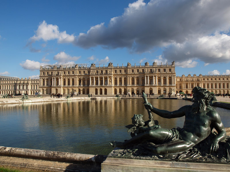 Francuski kralj Luj XIV. i cjelokupna plemićka svita (još nekih 20.000 osoba) živjeli su u golemoj palači, sagrađenoj između 1664. i 1710. godine, na mjestu ljetnikovca i lovačkih paviljona njegovog oca Luja XIII. Kod izgradnje svoje rezidencije, u kojoj se nalazilo pet kapela, čuvena Dvorana ogledala (ogledala su tada bila među najskupljim predmetima koje se uopće moglo posjedovati), raskošna operna dvorana koju je osvjetljavalo tri tisuće svijeća, Luj ni na čemu nije štedio. Sobe su ukrašene umjetničkim djelima iz svih krajeva svijeta. Kraljevo srebrno prijestolje počivalo je na skupom perzijskom sagu, a vaze ukrašene dijamantima stajale su uz bok komadima neprocjenjivo vrijednog kineskog i japanskog porculana. Potom je u središtu palače napravljen veliki trg za održavanje svečanosti, smotri i parada dok je uz palaču uređen ogroman park s impozantnim fontanama (kojima je Luj bio opsjednut). Lujev dvorac je bio tako veličanstven da je tada o njemu pričao cijeli zapadni svijet – a priča se još i sada.
