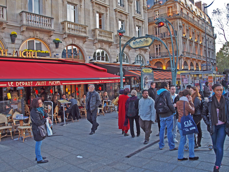 Na početku bulevara St. Michel nalazi se barokna fontana posvećena sv. Mihovilu, koji svojim plamenim mačem pobjeđuje zlo. Izgleda da su fontana i trg ispred nje, zbog svoje simbolike, privlačni organizatorima prosvjeda i socijalnih nemira. 1871. godine trg je postao središte Pariške komune, jedan od glavnih događaja francuskog otpora nacističkoj okupaciji zbio se na ovom trgu, a sada već legendarne 1968., unatoč suzavcu i policijskim pendrecima, studenti su zauzeli trg i proglasili ga za svoju neovisnu državu. Po nekima, to je pokrenulo i radnike na masovne štrajkove, što je u konačnici dovelo do pada de Gaulleove vlade. U mirnijim vremenima koja su uslijedila, trg je bio prepun hipija, umjetnika, pisaca, pjesnika, plesača, glazbenika i likovnih studenata. Sada je hladno, oblačno i vuče na kišu, pravi jesenji dan, pa se ovdje zaustavljaju samo turisti, brzo se slikaju ispred fontane i žurno nastavljaju šetnju Latinskom četvrti prema nekom toplijem mjestu.