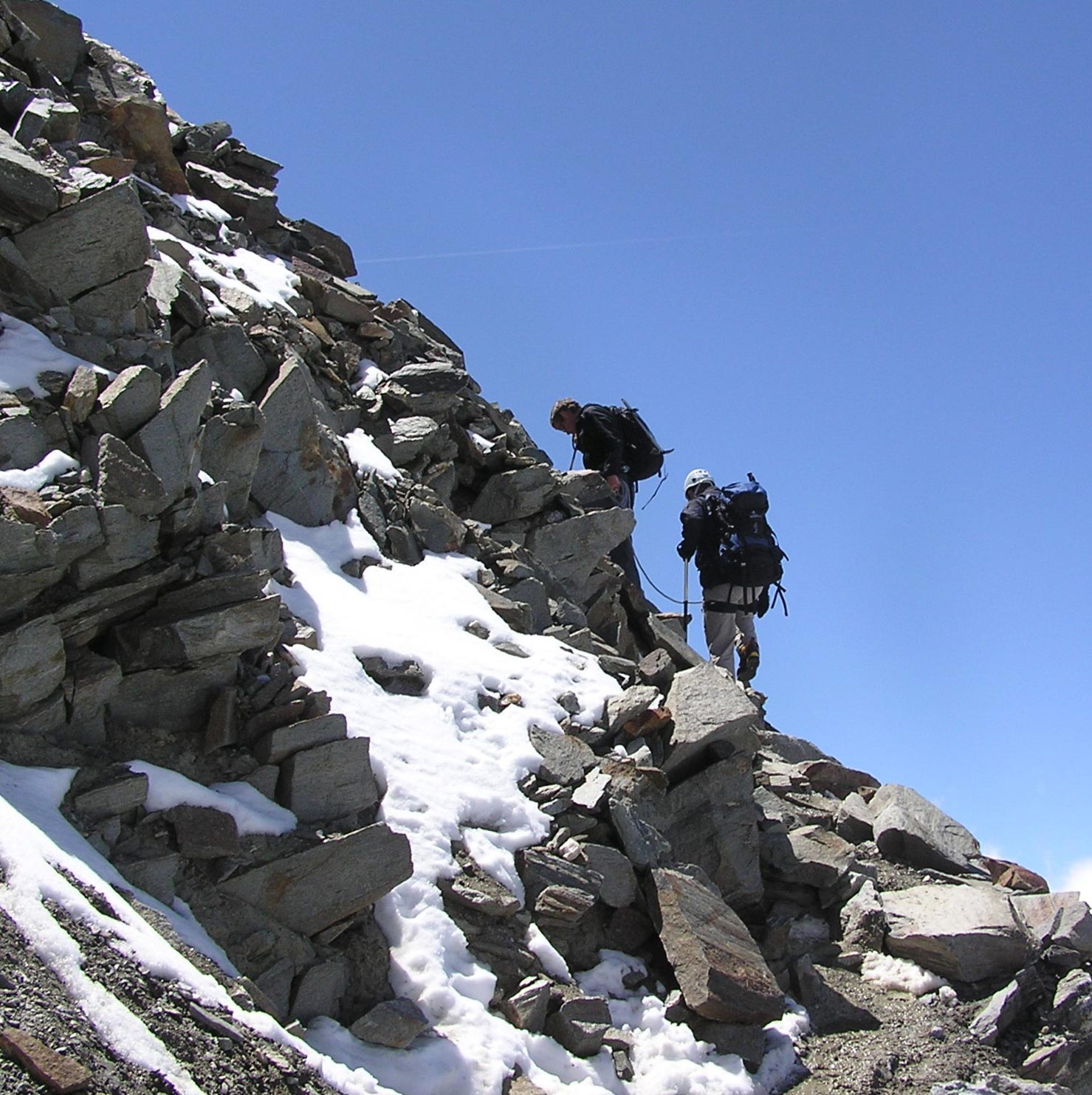Sunday, 17 July 2005Day 3: MONT BLANC Climb attempt (Day 2) (Tête Rousse Hut (3167 m) – Gouter Hut (3835 m) – Valot Hut (4362 m) – Highest point reached on this climb attempt (approx. 4500 m) – Return to Chamonix same route).