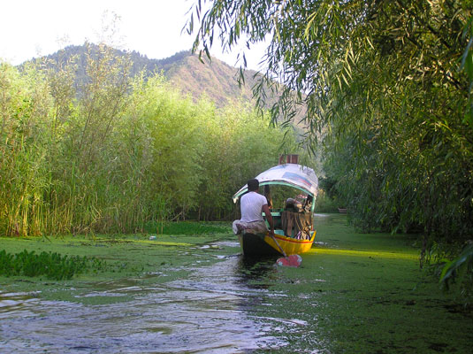 Na zelenom kašmirskom jezeru Dal, glavno je prijevozno sredstvo šareni tradicionalni čamac shikara.